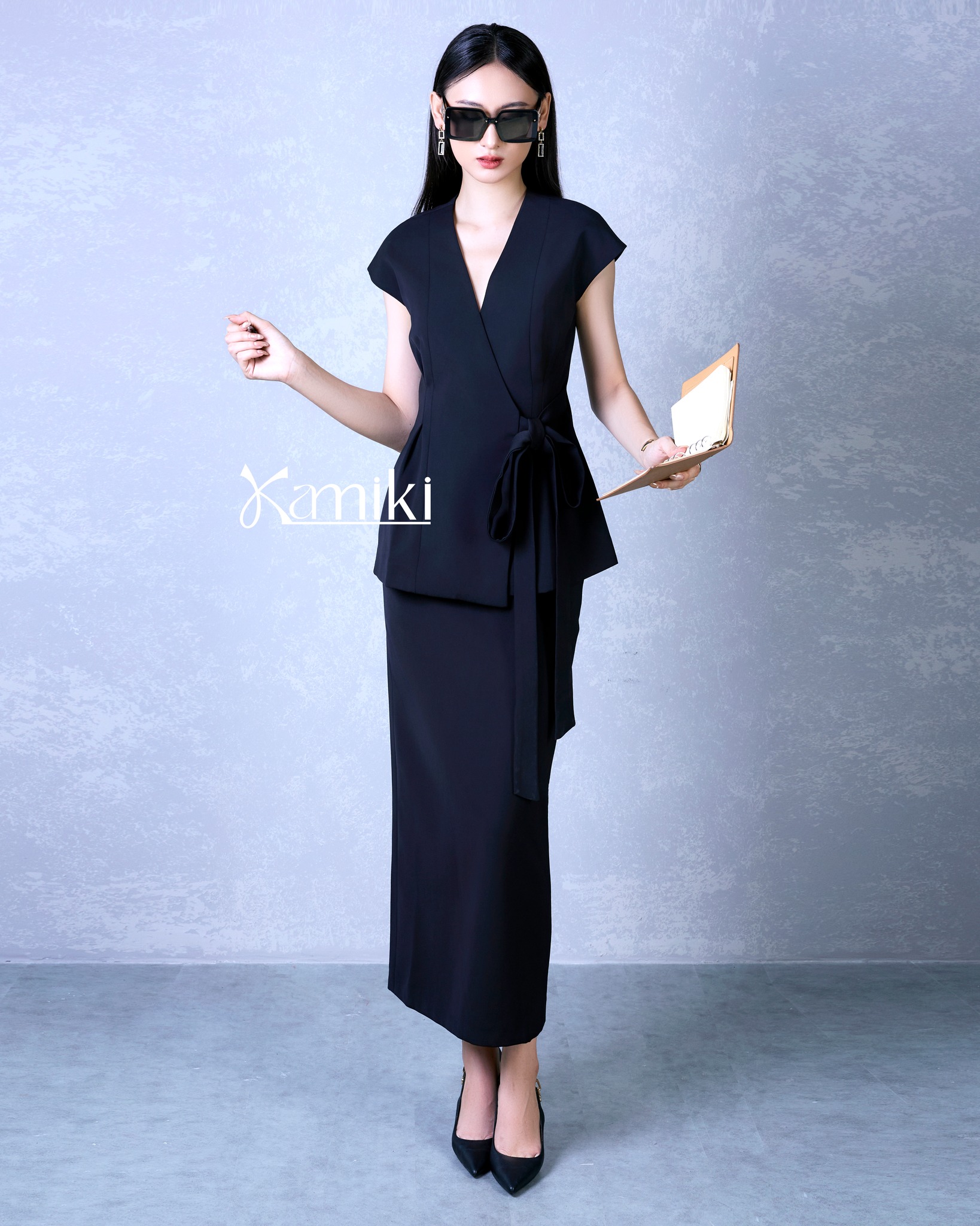 Thiết kế: Dáng áo chéo phối buộc eo nhẹ nhàng, tạo điểm nhấn vòng eo thon gọn. Phần cổ V sâu giúp cổ và vai thêm thanh thoát, tay áo lỡ che khuyết điểm cánh tay rất khéo léo.