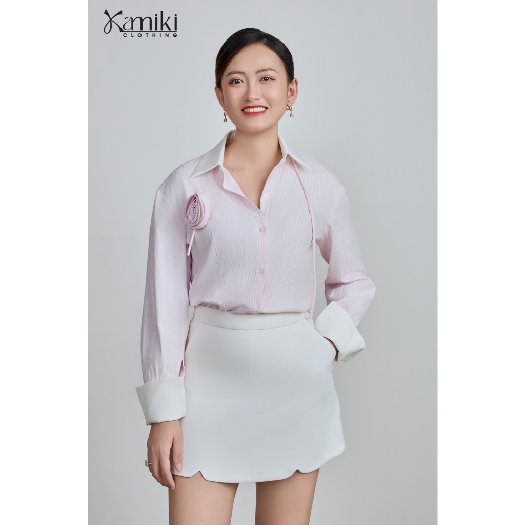 Kiểu dáng: Dáng áo basic nhưng được chăm chút tỉ mỉ trong từng đường may. Cổ áo và cổ tay áo trắng trơn, tạo điểm nhấn nổi bật so với phần thân áo sọc. Phần tay dài, có thể xắn gập linh hoạt để biến tấu phong cách. Thiết kế hàng cúc truyền thống, phù hợp với môi trường chuyên nghiệp. Họa tiết: Kẻ sọc trắng thanh mảnh, tạo cảm giác cao ráo và thanh lịch.